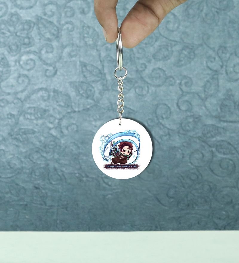 Action Pose Anime Boy Drawing Printed Round Keychain Pack of 2