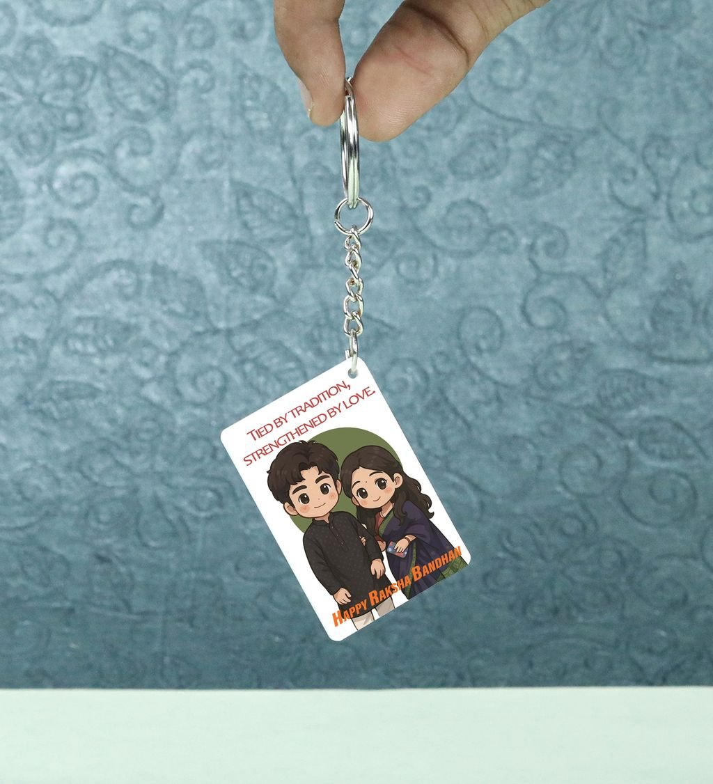 Celebrate the pure bond of Raksha Bandhan with our Bandhan of Blessings printed keychain. Designed to capture the love, care, and protection shared between siblings, this keychain makes a meaningful keepsake and a thoughtful gift. Lightweight, durable, and stylish, it