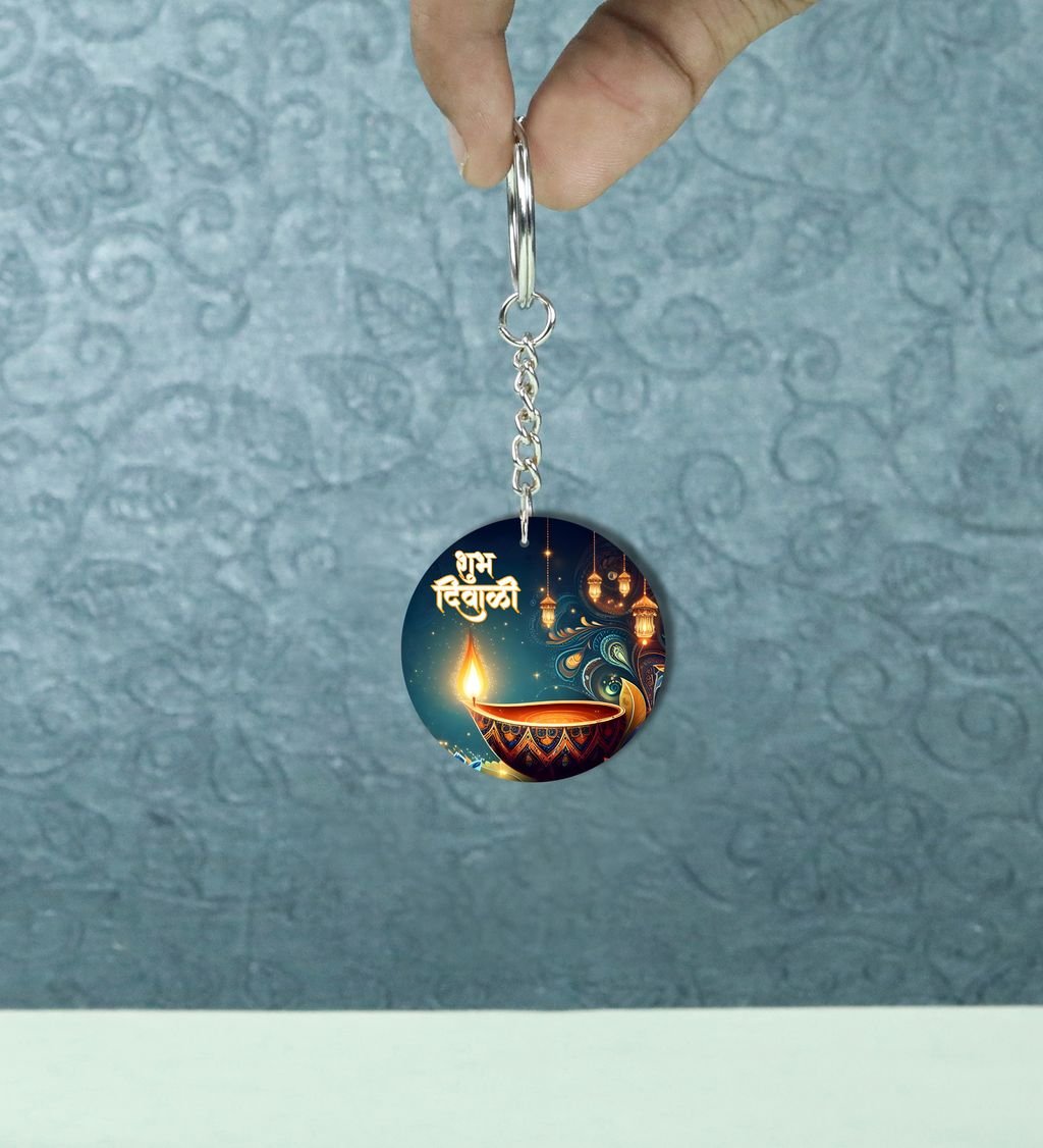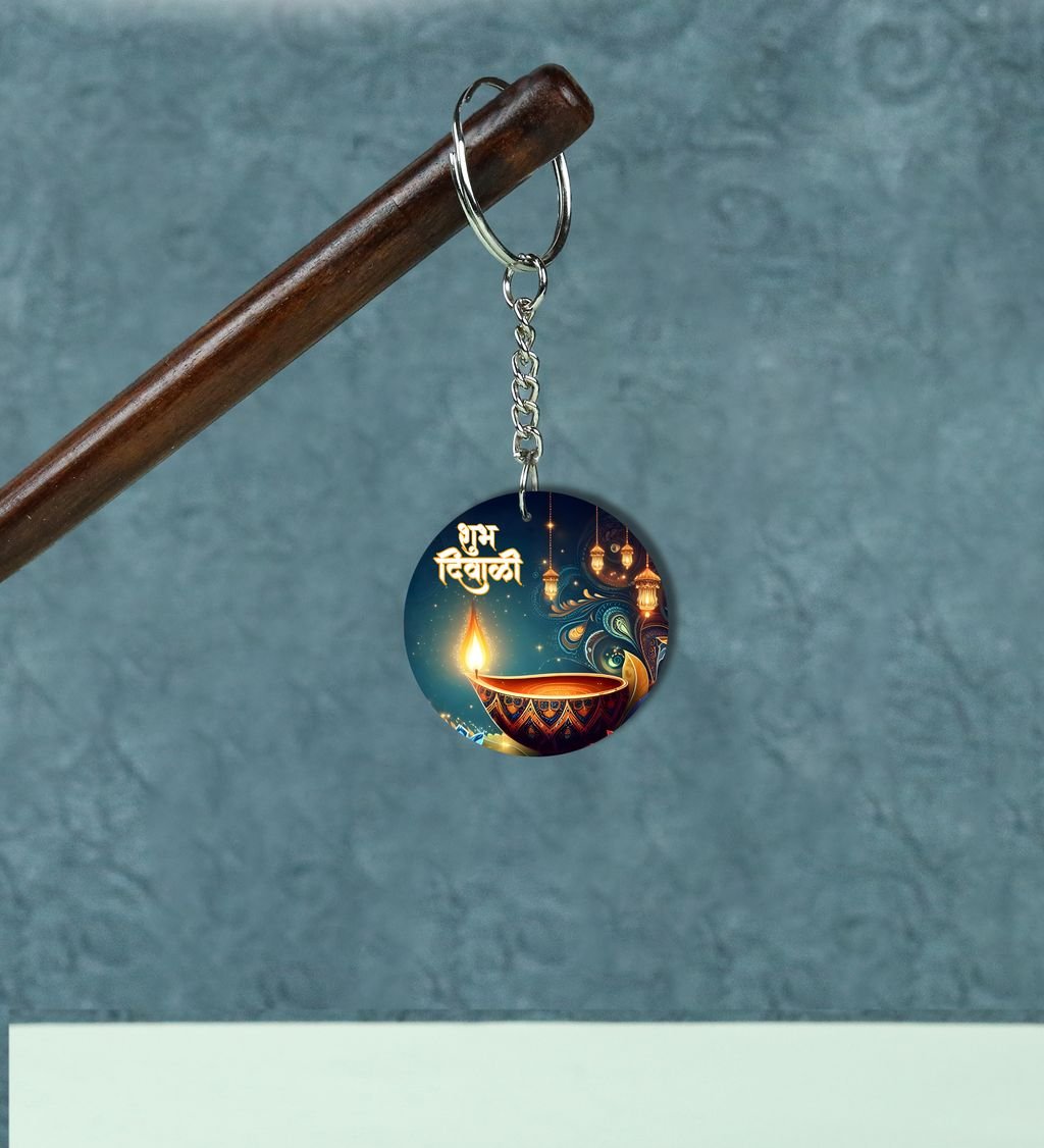 Bright Diyas Glow Diwali Printed Round Keychain Pack of 2