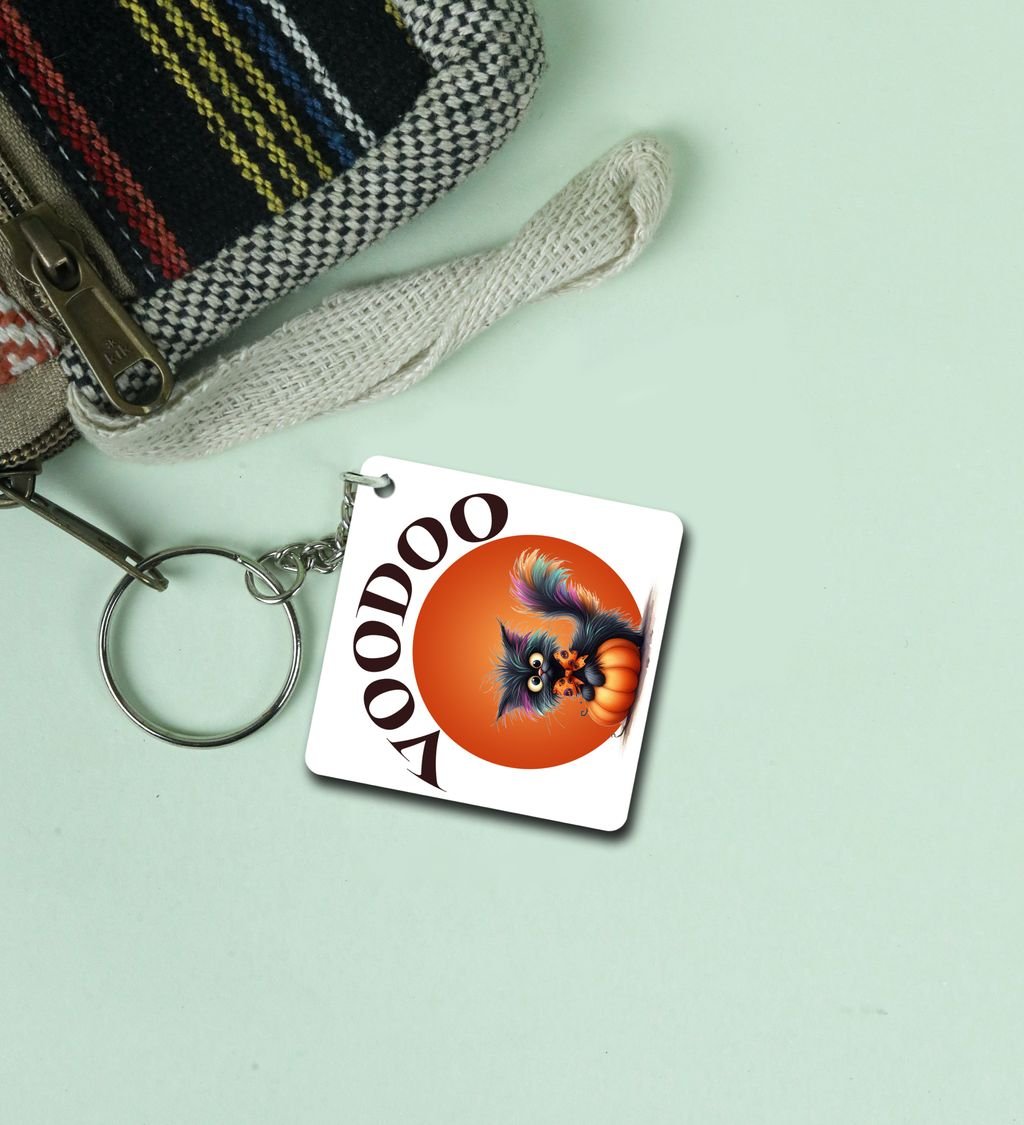 Add a twist of spooky charm to your everyday carry with this Hollo-Wello themed square keychain! Featuring quirky Halloween-inspired art and bold seasonal colors, it