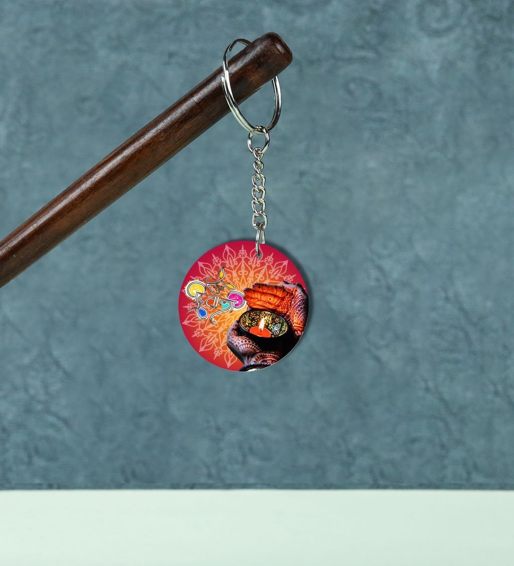 Celebration of Lamps Diwali Printed Round Keychain Pack of 2