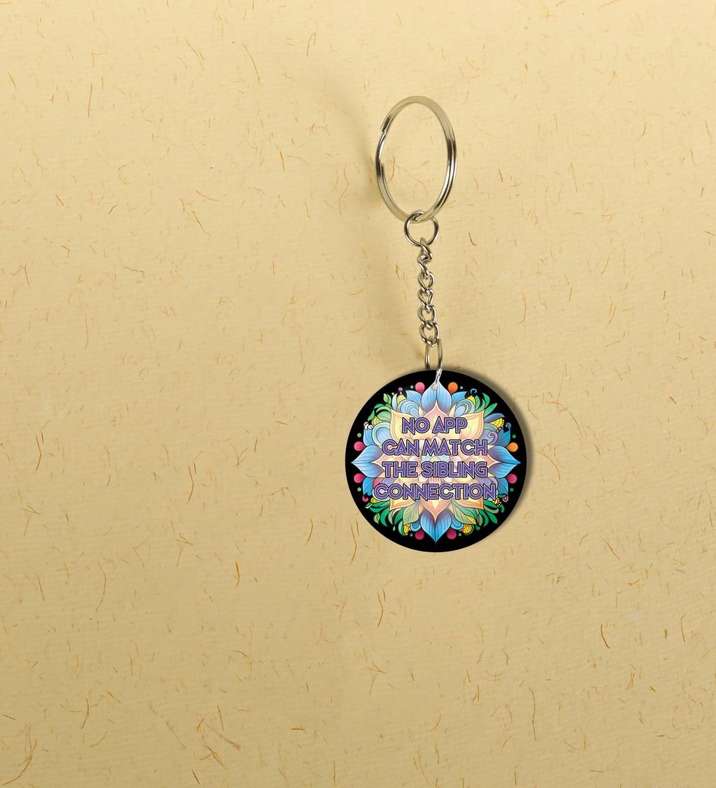 Colorful Art With Unmatched Sibling Connection Quote Printed Round Keychain Pack of 2