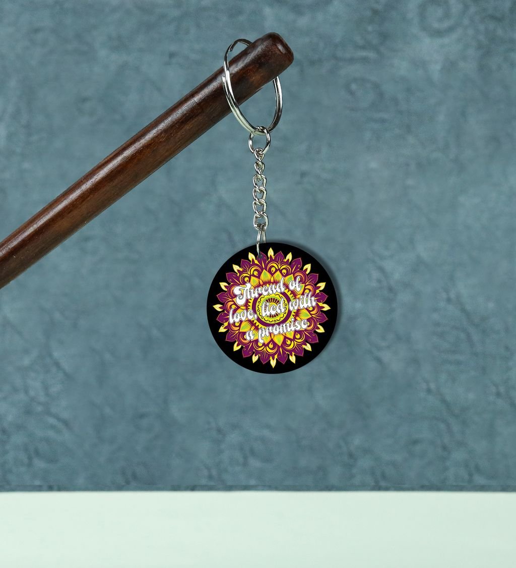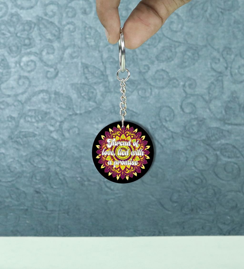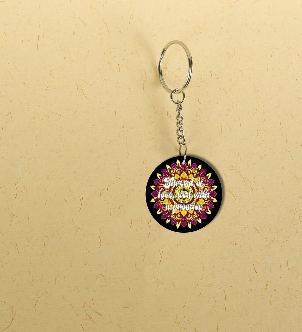 Celebrate the sacred bond of protection and tradition with our Rak?ha?sk?it Round Keychain. Inspired by ancient Indian motifs and symbols of divine guardianship, this keychain blends cultural elegance with daily utility. A perfect token to carry blessings wherever you go, it's more than just a keyholder