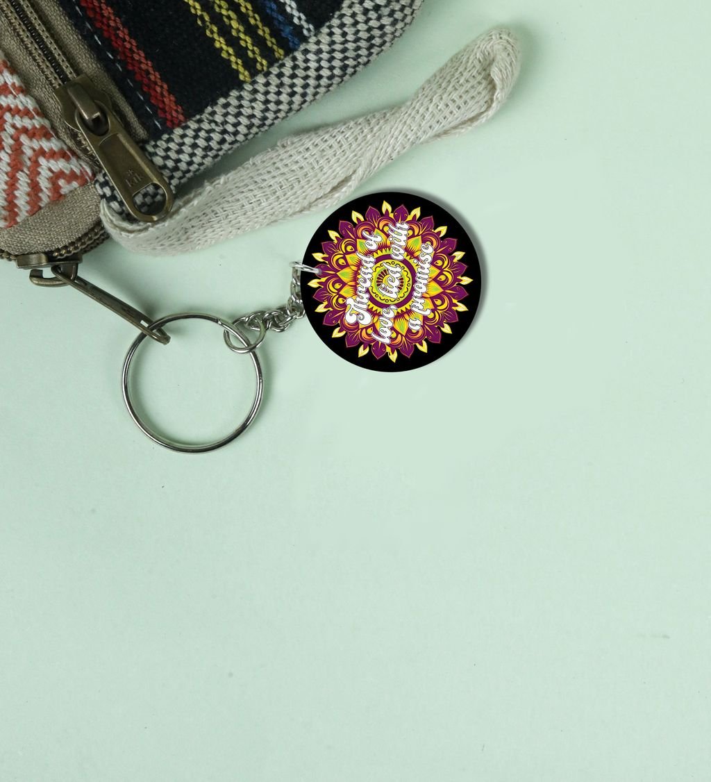 Colorful Mandala with Thread of Love Text Printed Round Keychain Pack of 2