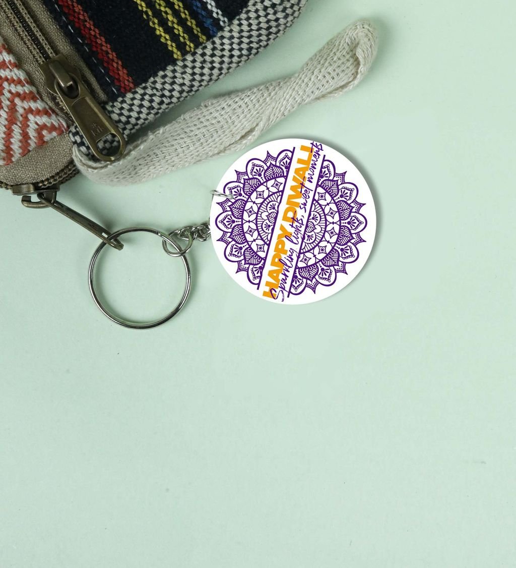 Diwali Magic Starts with First Light Printed Round Keychain Pack of 2