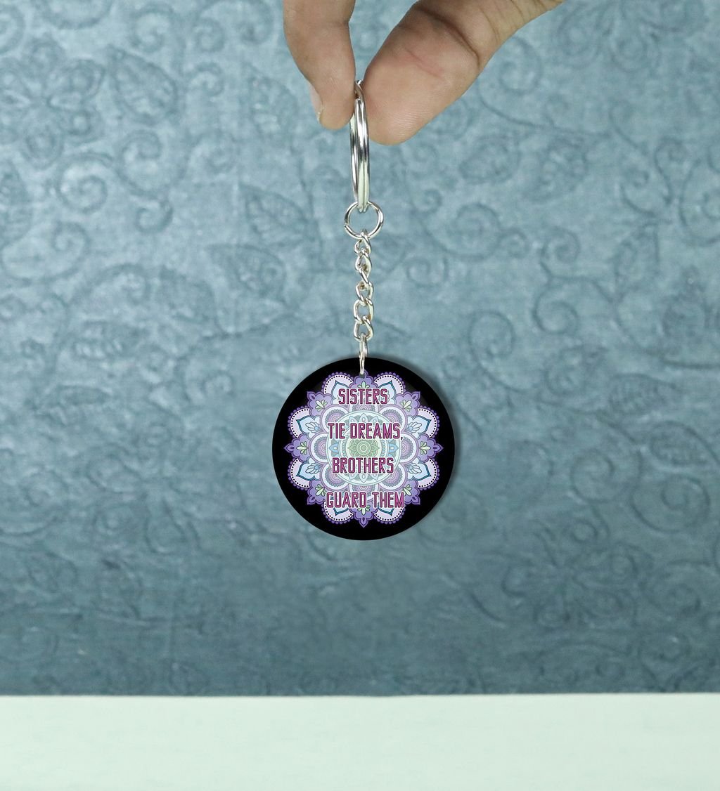Dreams And Protection Raksha Bandhan Quote Printed Round Keychain Pack of 2