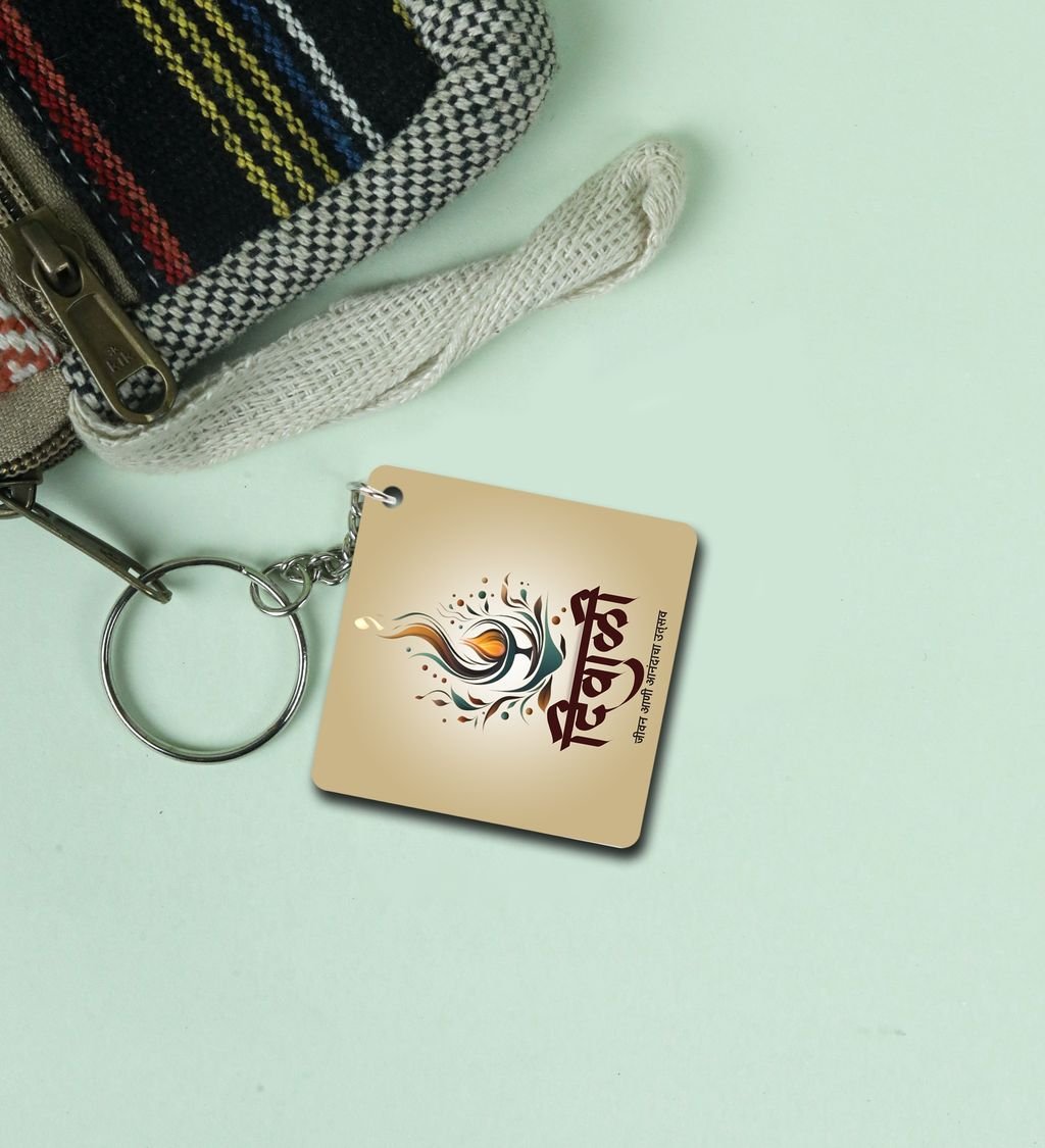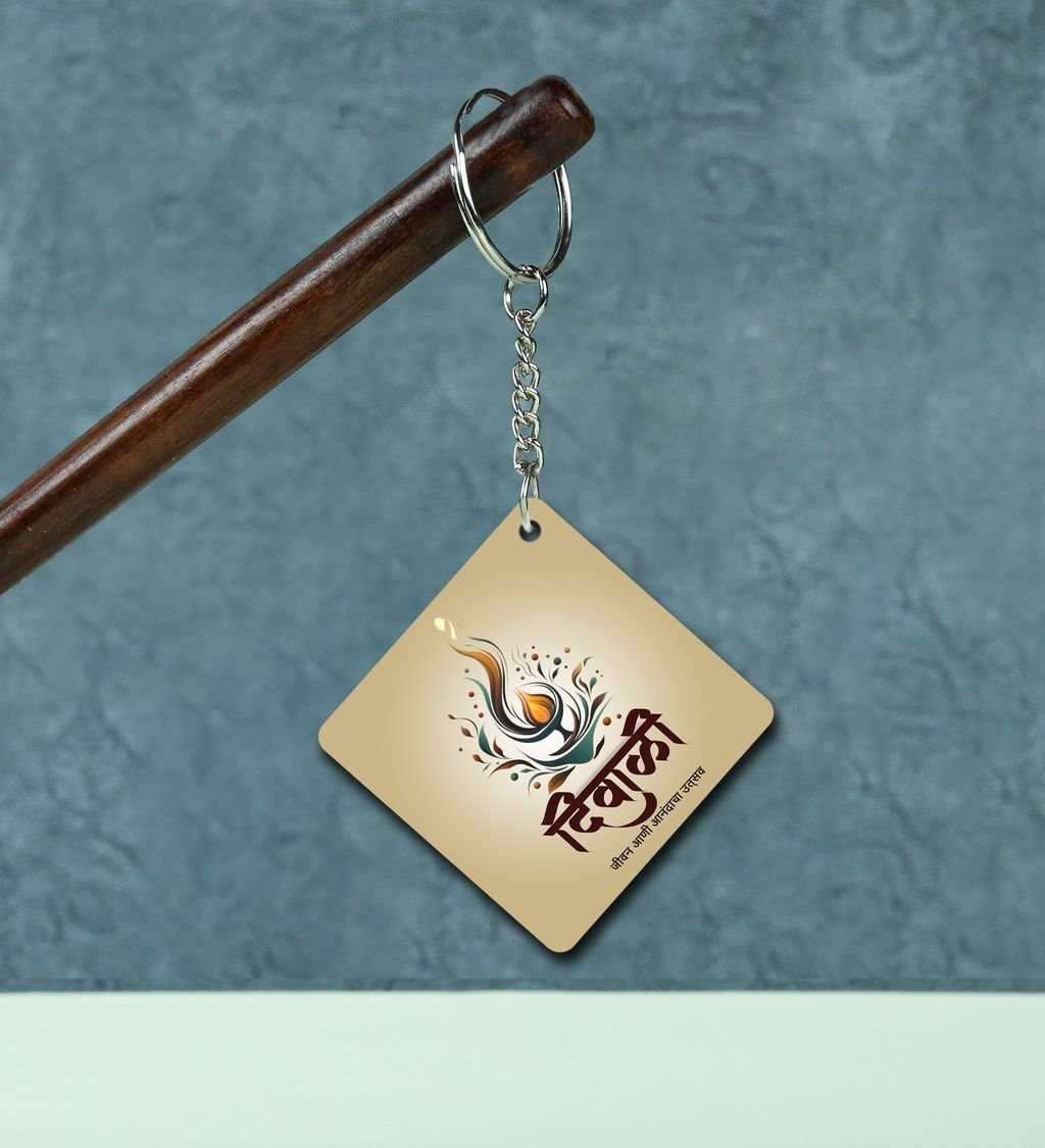 Festival of Lights Shine On Diwali Slogan Printed Square Keychain