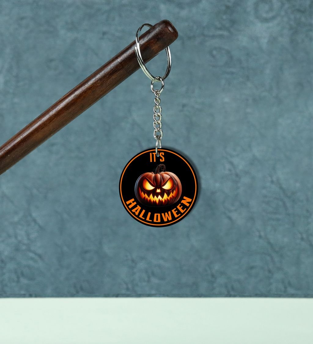 Fright Night Grinning Pumpkin Head Printed Round Keychain Pack of 2
