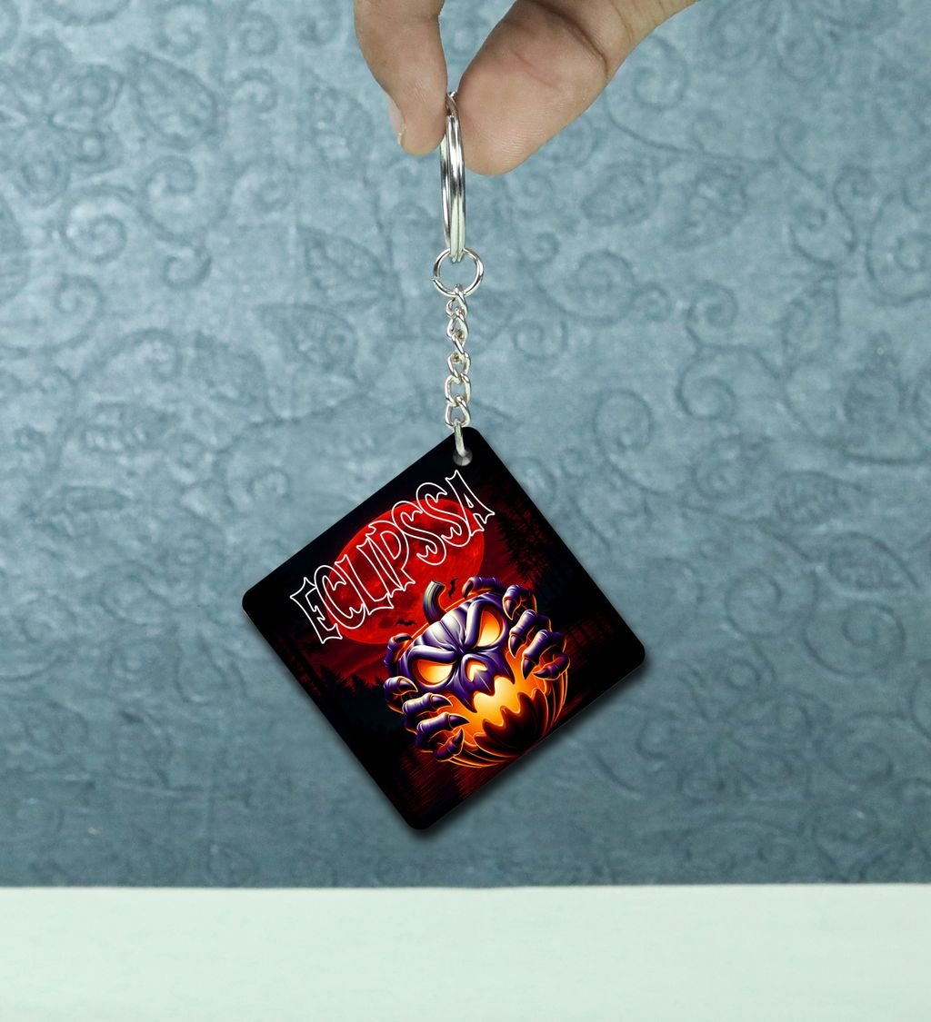 Haunting Flame Skull and Blood Moon Eclipse Design Printed Keychain Pack of 2