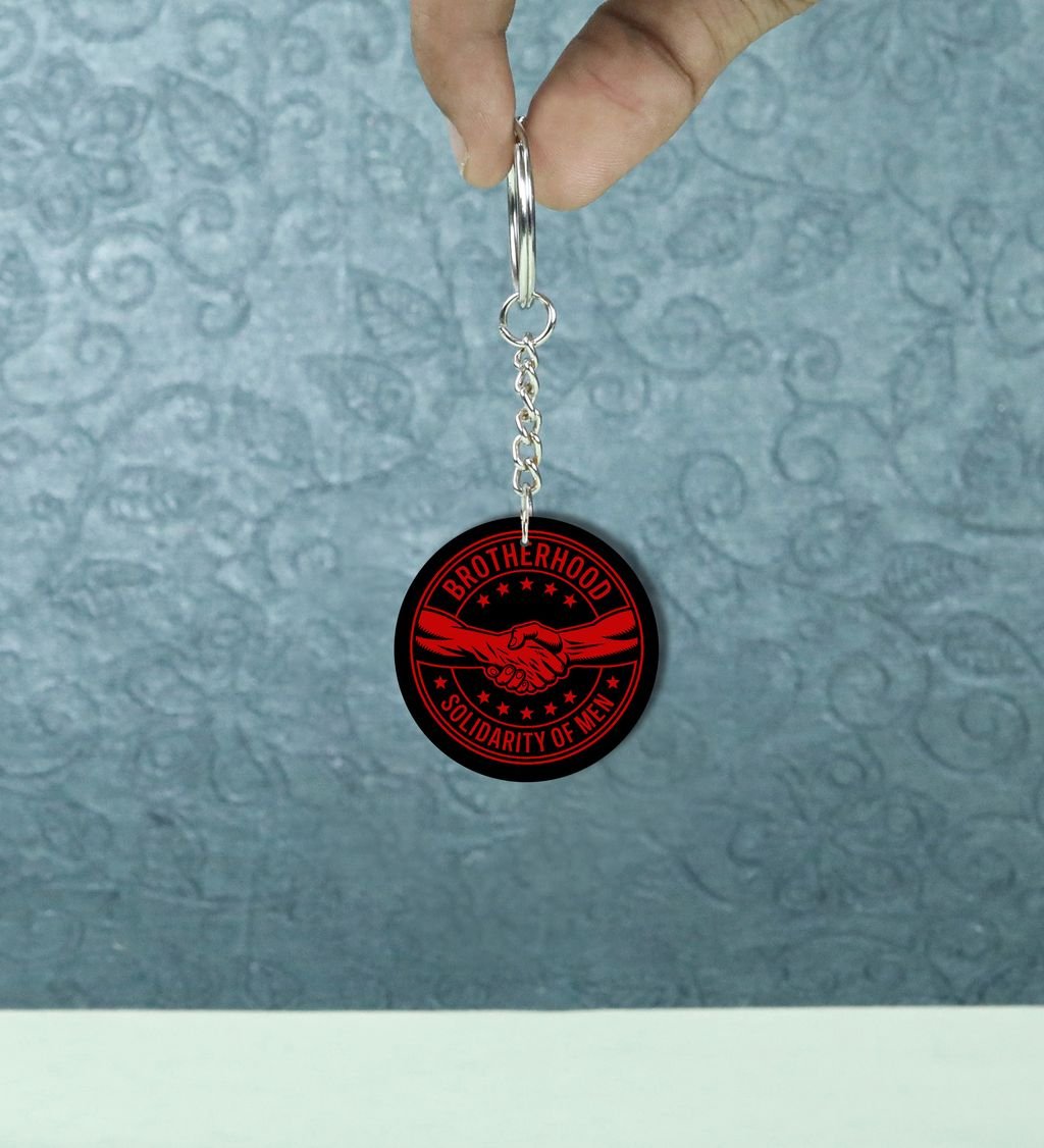 Powerful Brotherhood Unity Seal Design Printed Round Keychain Pack of 2