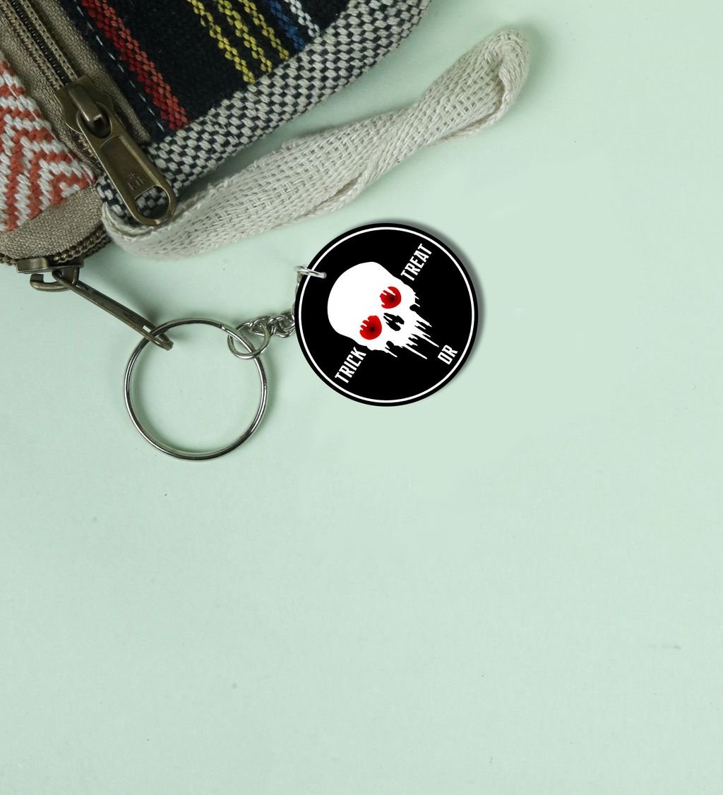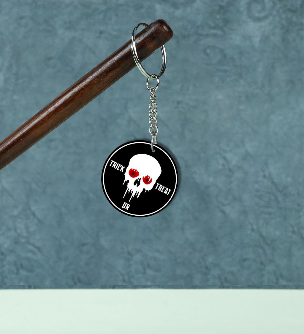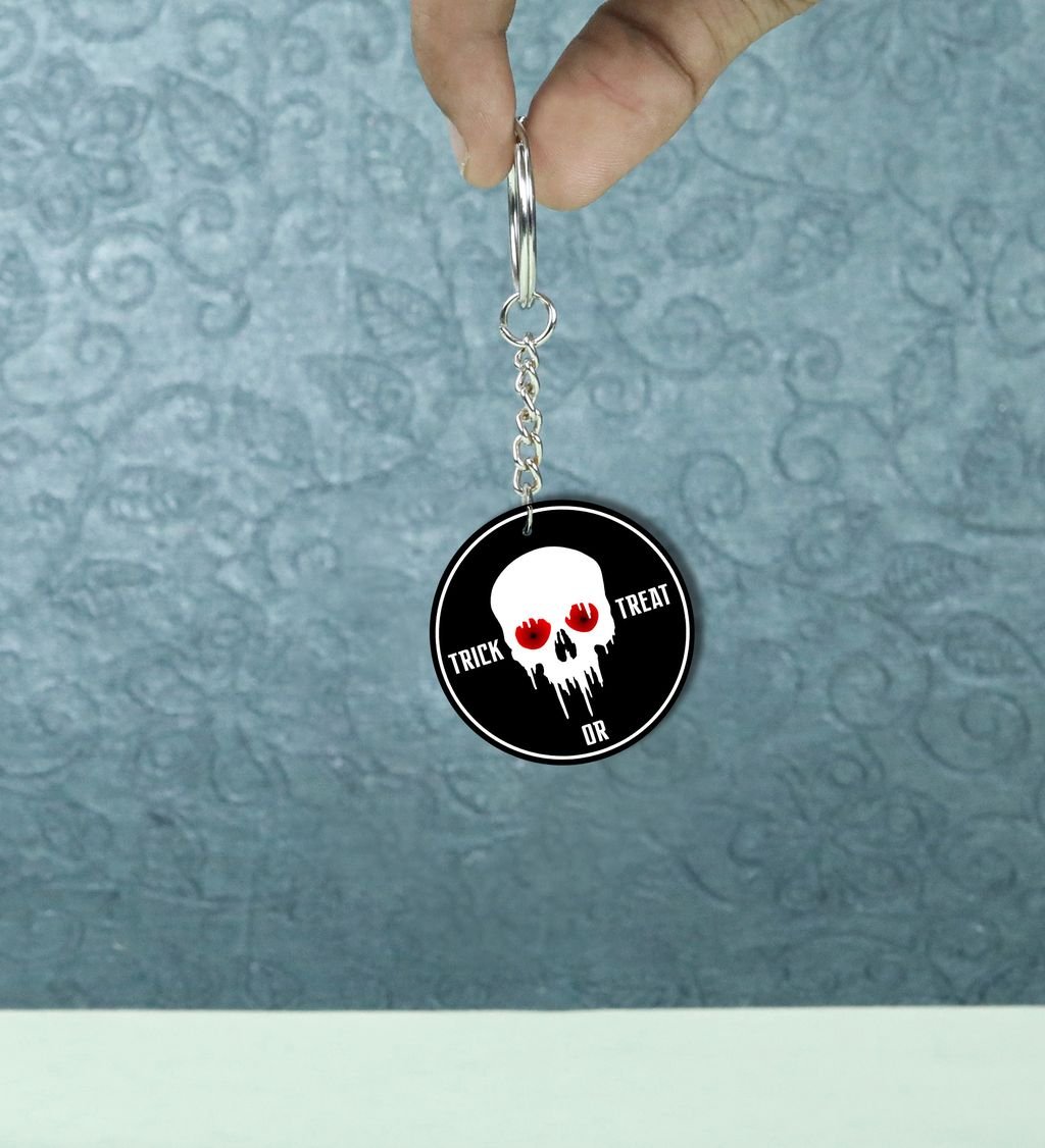Spooky Skull with Horror Eyes Printed Round Keychain Pack of 2