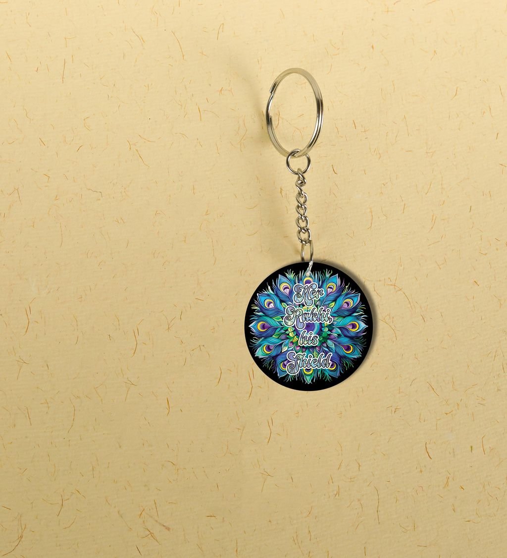 Celebrate the sacred bond of protection and tradition with our Rak?ha?sk?it Round Keychain. Inspired by ancient Indian motifs and symbols of divine guardianship, this keychain blends cultural elegance with daily utility. A perfect token to carry blessings wherever you go, it's more than just a keyholder