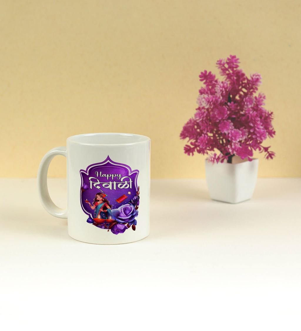Celebrate the festival of lights with every sip! This beautifully designed Happy Diwali coffee mug adds a festive glow to your mornings and cozy evenings. Featuring vibrant diyas and elegant patterns, it's perfect for gifting or enjoying your favorite brew during the celebrations. Make your Diwali sparkle